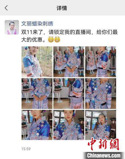 Yang Wenli promotes the traditional costumes of the Miao ethnic group on her WeChat Moments. (Screenshot/Yang Wenli’s Wechat Moments)