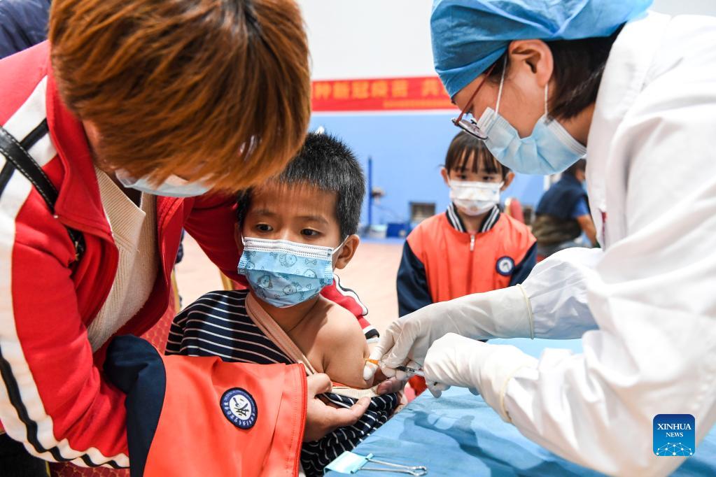 Children aged 3 to 11 receive COVID-19 vaccine in Pingxiang, Guangxi
