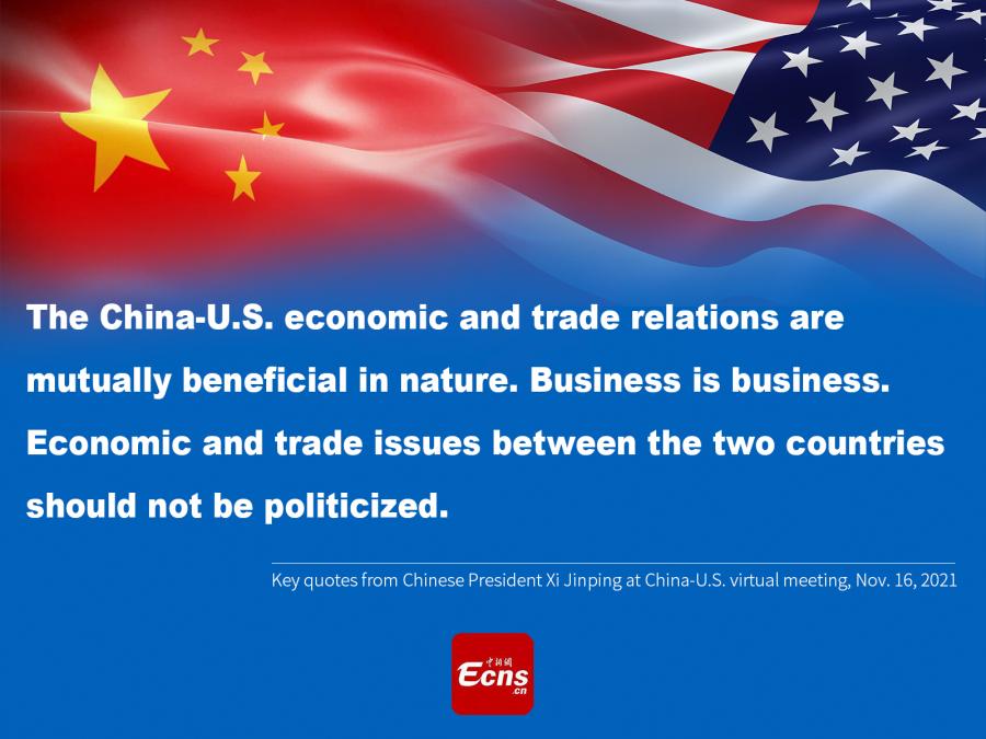 Key quotes from Chinese President Xi Jinping at China-U.S. virtual meeting