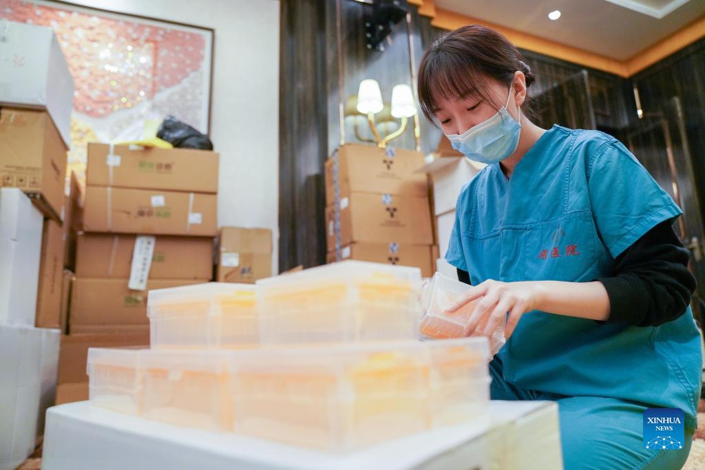 Liu Bing prepares medical supplies near a nucleic acid test laboratory named Huoyan, or Fire Eye, in Heihe City, northeast China's Heilongjiang Province, Nov. 14, 2021. Liu Bing, a 24-year-old medical worker, acts as a real "virus detective" in the fight against the latest COVID-19 resurgence in Heihe City. The city reported new locally transmitted COVID-19 cases on Oct. 27. Since then, Liu joined other 32 medical workers for nucleic acid testing tasks. Dressed head to toe in protective clothing, Liu has been working around the clock for COVID-19 testing, such as extracting nucleic acid from swab samples. Her body was often drenched in sweat by wearing thick protective suits. "I need to be responsible for each sample, which is to be responsible for people in the city. I must be extremely cautious," Liu, a Heihe local said. (Xinhua/Wang Song)