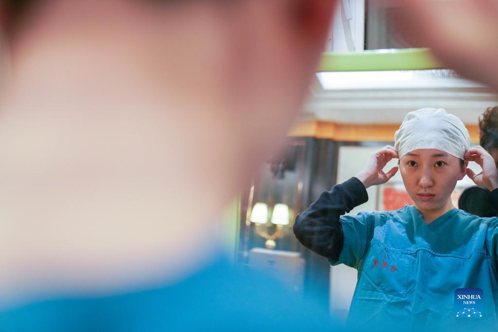 Liu Bing changes protective gear near a nucleic acid test laboratory named Huoyan, or Fire Eye, in Heihe City, northeast China's Heilongjiang Province, Nov. 14, 2021. Liu Bing, a 24-year-old medical worker, acts as a real "virus detective" in the fight against the latest COVID-19 resurgence in Heihe City. The city reported new locally transmitted COVID-19 cases on Oct. 27. Since then, Liu joined other 32 medical workers for nucleic acid testing tasks. Dressed head to toe in protective clothing, Liu has been working around the clock for COVID-19 testing, such as extracting nucleic acid from swab samples. Her body was often drenched in sweat by wearing thick protective suits. "I need to be responsible for each sample, which is to be responsible for people in the city. I must be extremely cautious," Liu, a Heihe local said. (Xinhua/Wang Song)