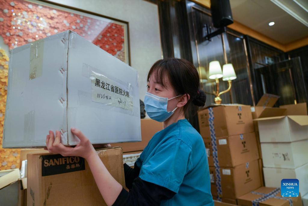 Liu Bing prepares medical supplies near a nucleic acid test laboratory named Huoyan, or Fire Eye, in Heihe City, northeast China's Heilongjiang Province, Nov. 14, 2021. Liu Bing, a 24-year-old medical worker, acts as a real "virus detective" in the fight against the latest COVID-19 resurgence in Heihe City. The city reported new locally transmitted COVID-19 cases on Oct. 27. Since then, Liu joined other 32 medical workers for nucleic acid testing tasks. Dressed head to toe in protective clothing, Liu has been working around the clock for COVID-19 testing, such as extracting nucleic acid from swab samples. Her body was often drenched in sweat by wearing thick protective suits. "I need to be responsible for each sample, which is to be responsible for people in the city. I must be extremely cautious," Liu, a Heihe local said. (Xinhua/Wang Song)