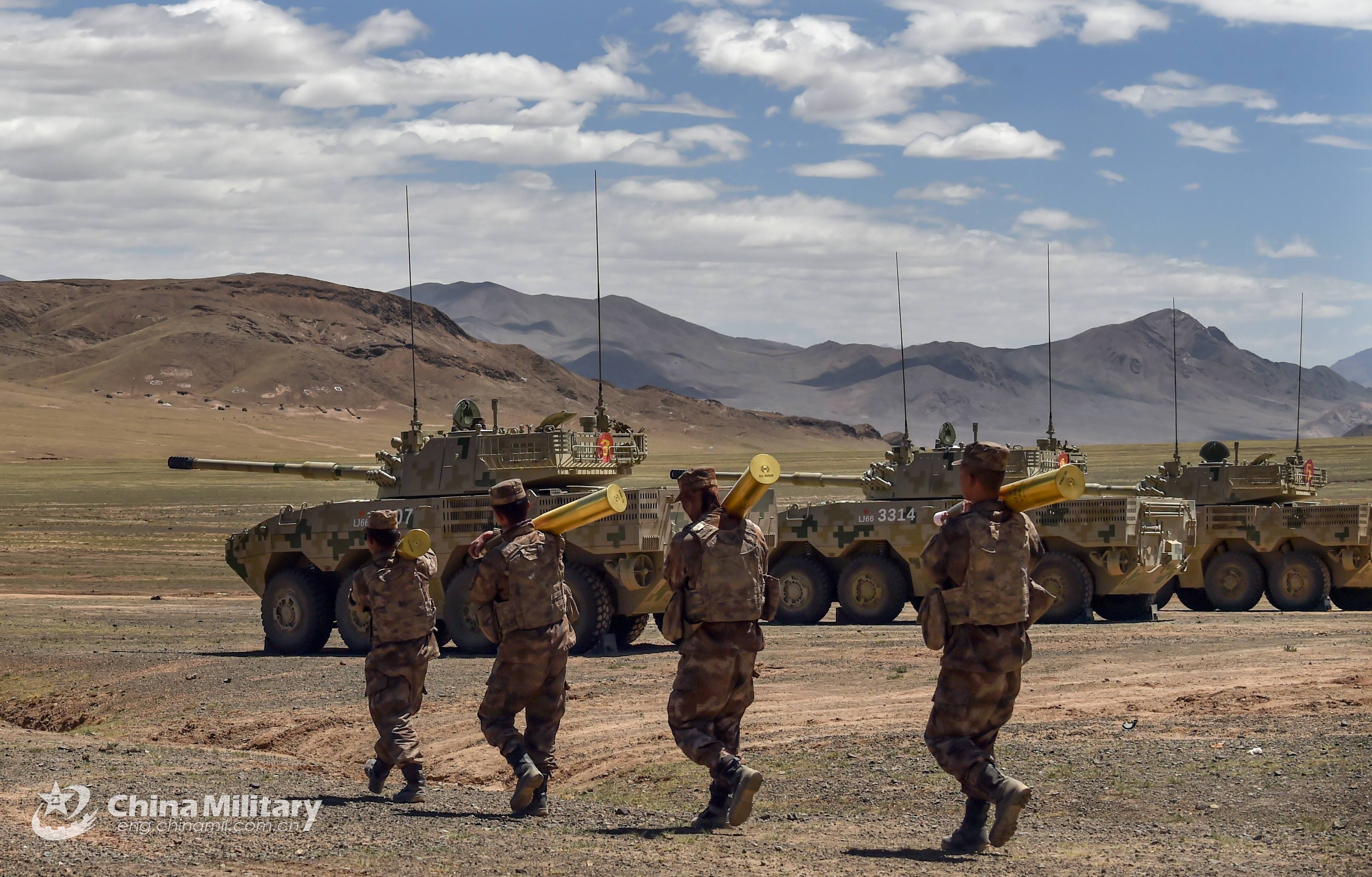 Soldiers assigned to a division under the PLA Xinjiang Military Command carry ammunition to armored vehicles prior to a live-fire test in late October, 2021. The training exercise was conducted on the Karakoram Plateau at about 4,500 meters above sea level, with an annual average temperature below -10°C. (eng.chinamil.com.cn/Photo by/ Liu Yong, Li Kang, Zhang Li, Shuai Lijian and Yan Shiqiang)