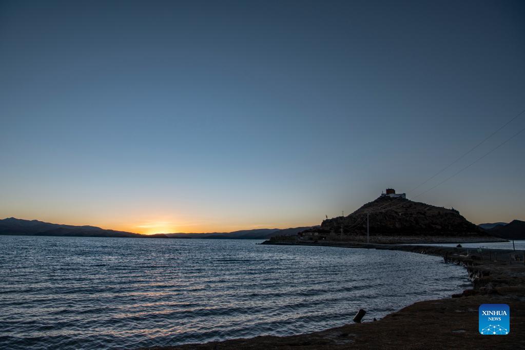 Photo taken on Nov. 16, 2021 shows the scenery of Yamzbog Yumco Lake in Shannan, southwest China's Tibet Autonomous Region. (Xinhua/Sun Fei)