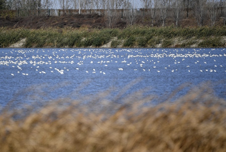 TIANJIN, Nov. 17 (Xinhua) -- The bird population in the Qilihai Wetland Nature Reserve, the largest natural wetland in north China's Tianjin Municipality, has soared to around 500,000 from less than 300,000 in the past decade, local authorities said on Wednesday.