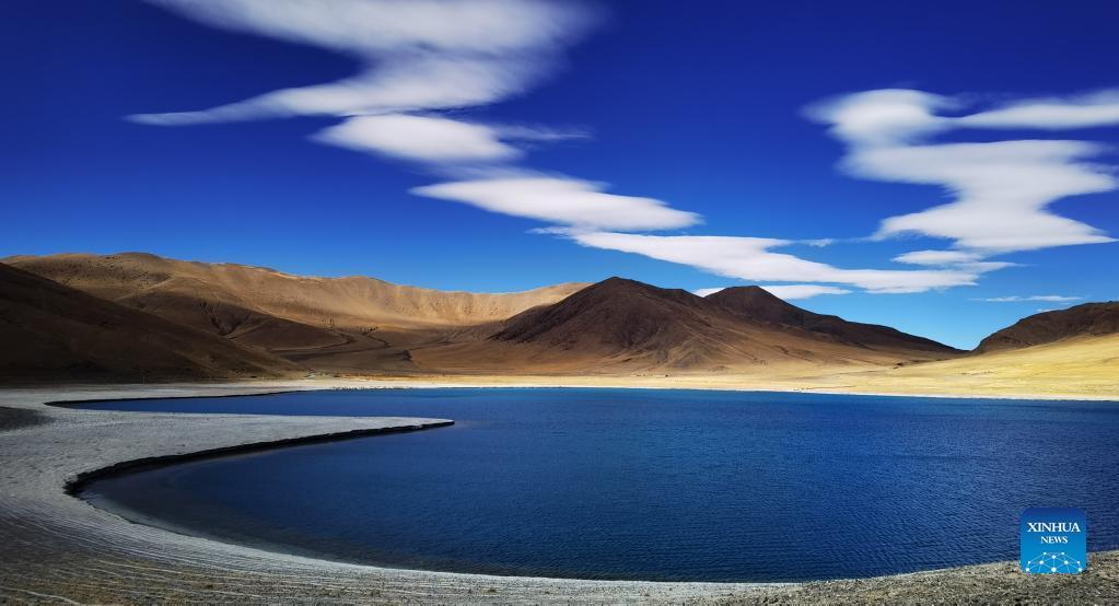 This picture shows the charming view of Yamdrok Lake as winter creeps in. The Yamdrok Lake, which nestles in Nagarze County of Shannan City, southwest China's Tibet Autonomous Region, is one of the three holy lakes in the region. Yamdrok means "jade" in Tibetan, which vividly depicts the limpidity and the fine blue color of the water. (Xinhua/Shen Hongbing)