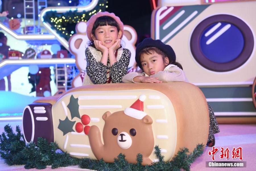 People take photos with Christmas decorations in Hong Kong, Nov. 17, 2021. (Photo: China News Service/Li Zhihua)