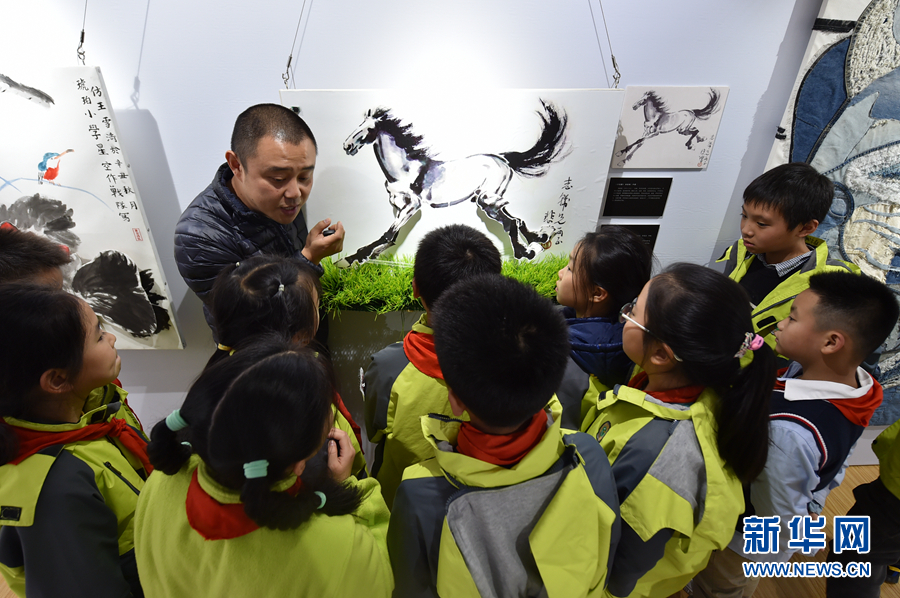 A primary school in Hefei City, east China's Anhui Province, has set up an "innovation studio" in a bid to broaden students' horizen by enriching their knowledge of science and arts. At the studio, students are encouraged to make the paintings from their textbooks "come alive" with the help of sound, light, and even programming. Such activities are in line with the "double reduction" policy, namely reducing students' excessive homework and off-campus tutoring during their nine-year compulsory education. (Xinhuanet/Yang Xiaoyuan)