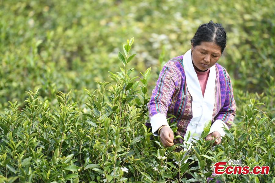 Local people pick tea leaves in Metok County, Southwest China's Tibet Autonomous Region. (Photo: China News Service/Gongga Laisong)