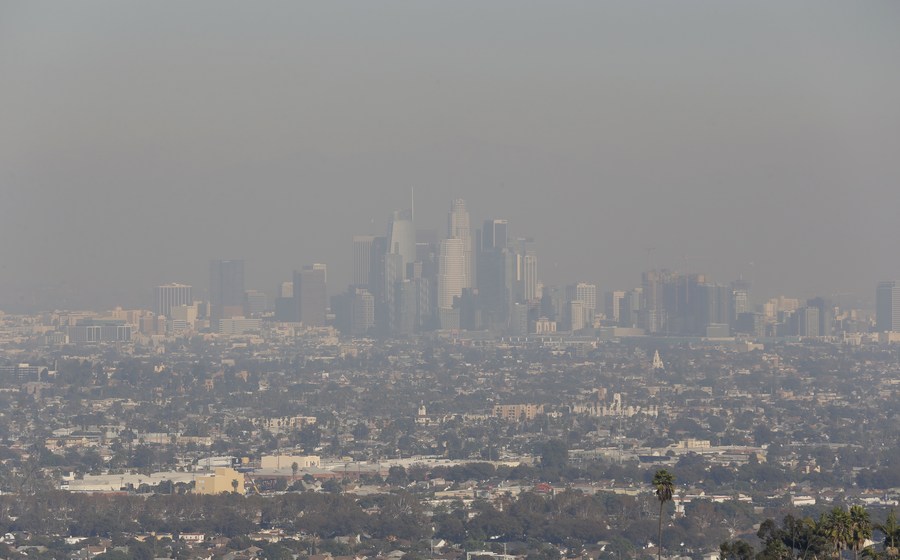 Photo taken on Dec. 6, 2017 shows a view of Los Angeles City in heavy smog. (Xinhua/Li Ying)