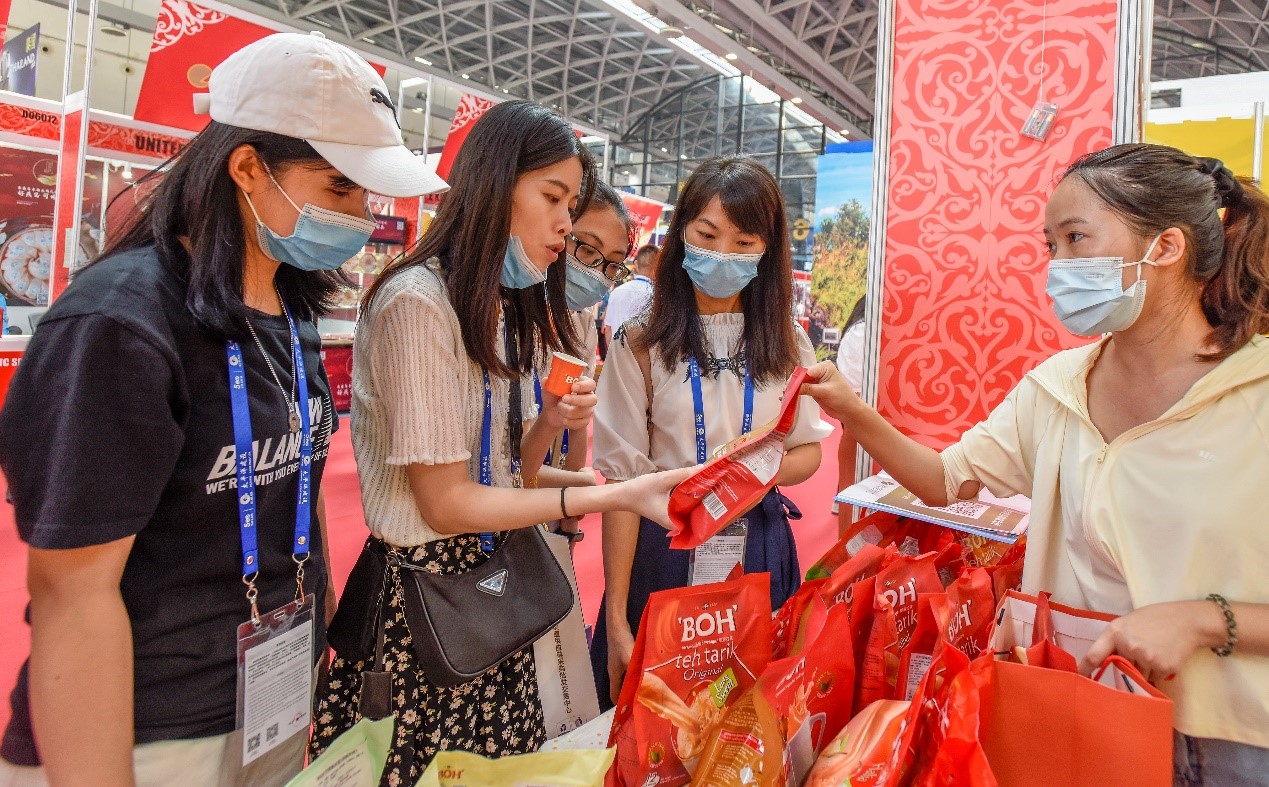 Visitors learn about Malaysian coffee at the 18th China-ASEAN Expo, Sept. 10, 2021. (People’s Daily Online/ Peng Huan)