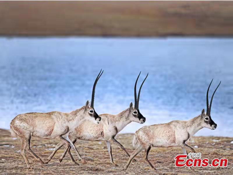 Photo shows Tibetan antelopes, which are under first-class state protection in China. (Photo: China News Service/Li Feng)
