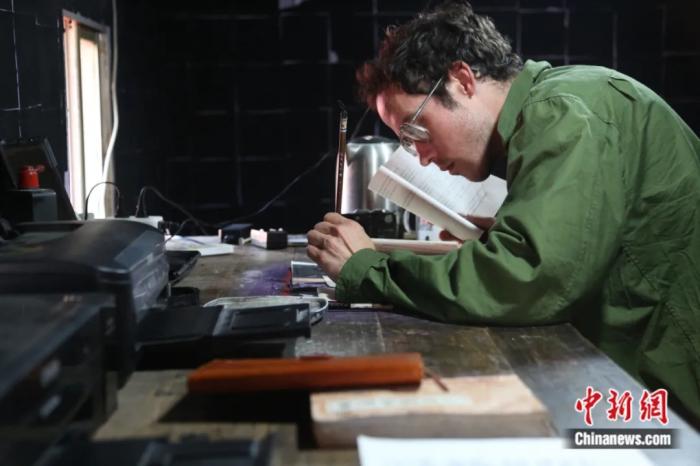 Photo shows Collins-Green in the middle of his translation work. (Chinanews.com/Jiang Tao)