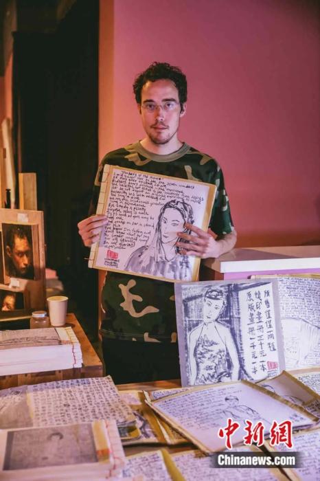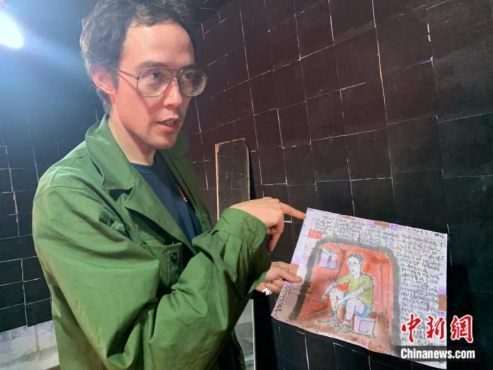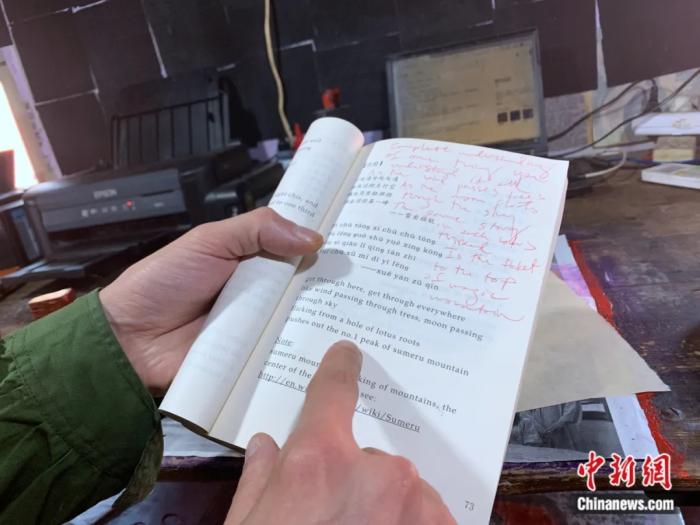 Collins-Green shows a piece of his translation work. (Chinanews.com/Li Yunhan)