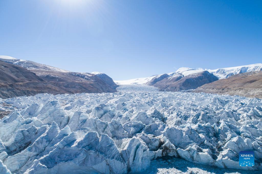 Photo taken on Nov. 20, 2021 shows the Gangbug Glacier in the border area between Nagarze and Kangmar counties, southwest China's Tibet Autonomous Region. (Xinhua/Sun Ruibo)