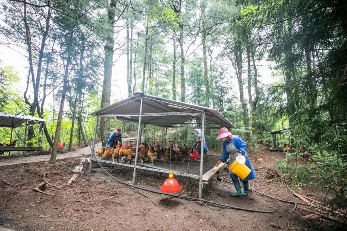 To the southeast of the bamboo mushroom plantation base, lies a free range chicken farm that keeps over 10,000 chickens. Zeng Lei, who's in charge of the chicken farm, told People's Daily that the farm, built in the woods, enjoys great vegetation and a sound environment, and the rich water resources there also make the farm a natural "habitat" for the chickens. Every time a batch of chickens are available for slaughter, the farm would be cleaned by its employees for the next batch to enter. The second batch of chickens this year have been sold to the Pearl River Delta.