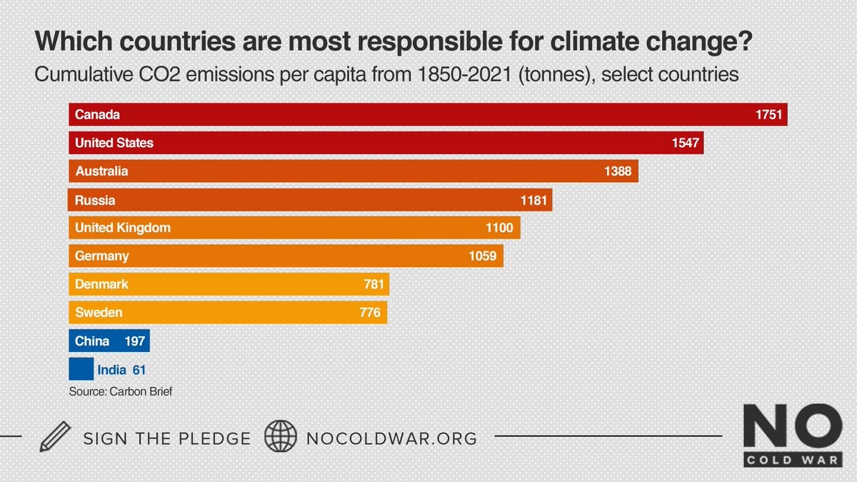 Lastly, most calculations of GHG emissions leave out the US military boot print, the single largest institutional emitter in the world, ranking higher than the emissions of 140 nations. Add the cost of endless US wars, and subtract offshored GHG from the West from China’s total, you get a different picture of responsibility for global emissions.