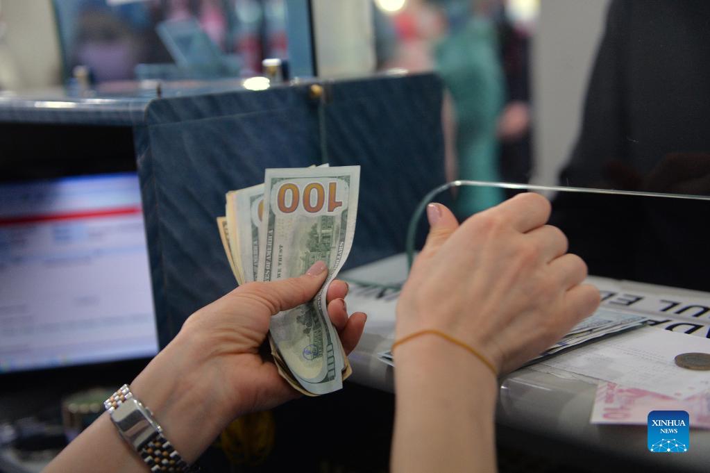A teller counts banknotes in an exchange office in Ankara, Turkey, on Nov. 23, 2021. The Central Bank of the Republic of Turkey (CBRT) said Tuesday that it upholds its policy of implementing a floating exchange rate and has no commitment to "any exchange rate level" as the lira, the country's currency, nosedived in forex markets to a record low. The Turkish lira's exchange rate on Tuesday lost nearly 10 percent to 13.44 liras against the U.S. dollar before recovering some of its loss in late afternoon. (Photo by Mustafa Kaya/Xinhua)