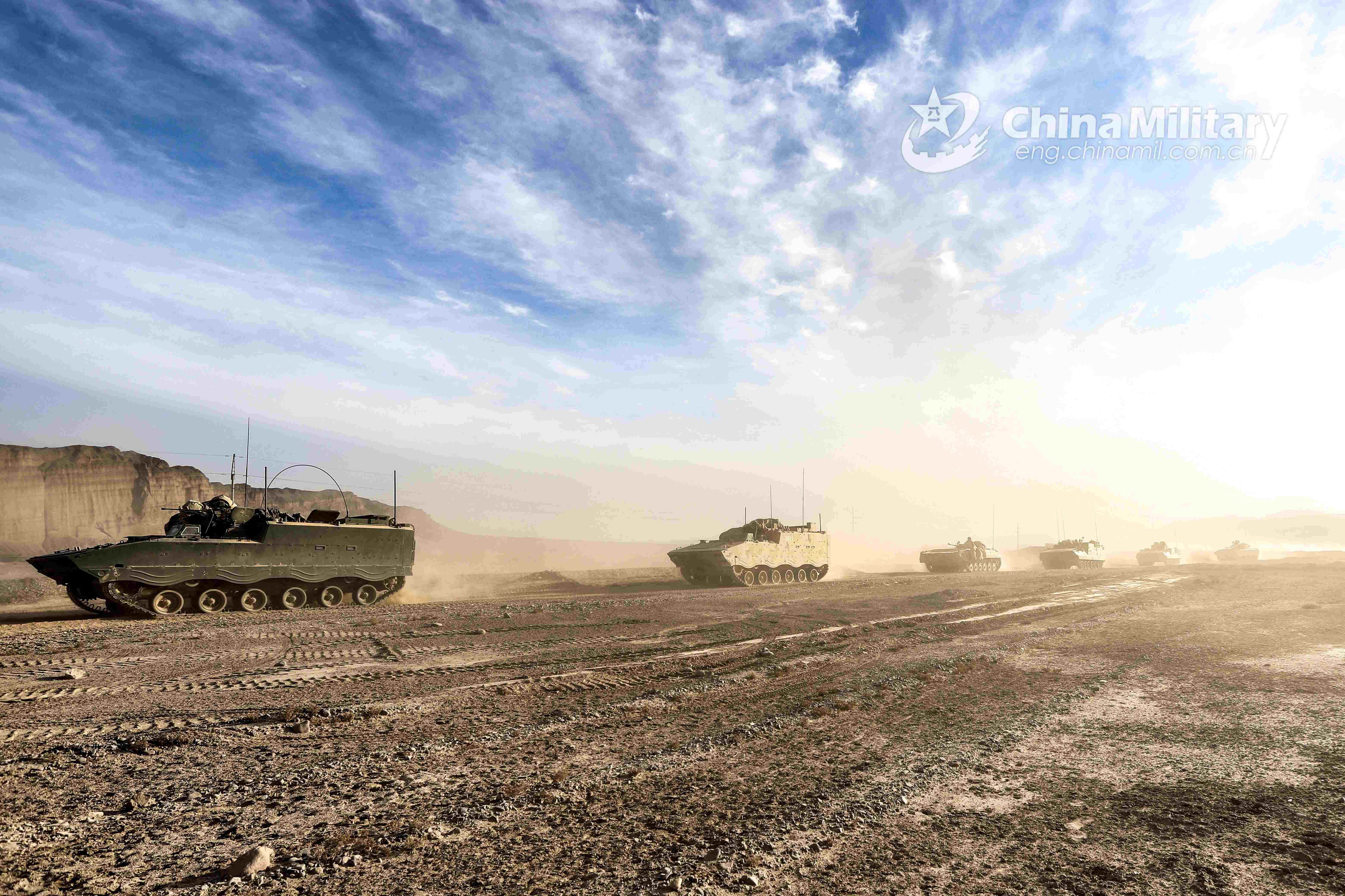 Infantry fighting vehicles attached to a combined arms regiment under the PLA Nanjiang Military Command are en route to a designated training field for a live-fire training exercise in late October, 2021. (eng.chinamil.com.cn/Photo by Kong Lingzhi and Li Jinqiao)