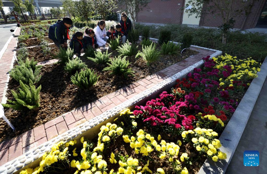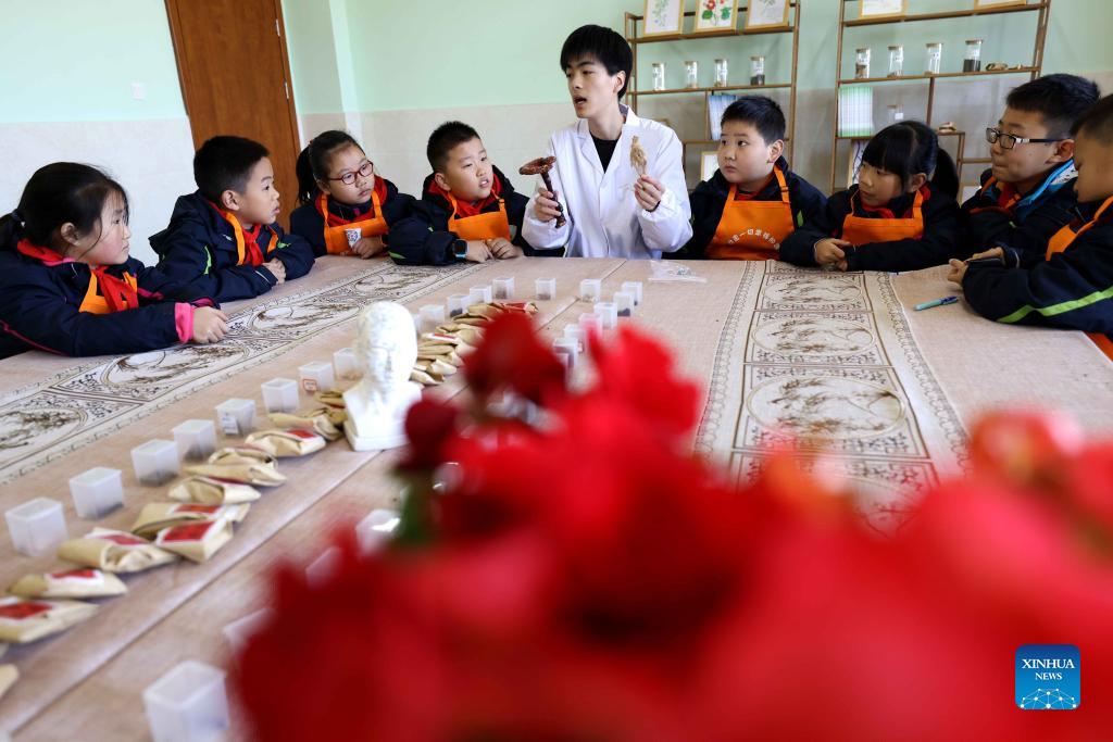Students of Xingfulu Primary School in Yaohai District, Hefei City, east China's Anhui Province, learn knowledge about traditional Chinese medicine at the school's herbal medicine workshop on Nov. 24, 2021. (Xinhua/Xie Chen)