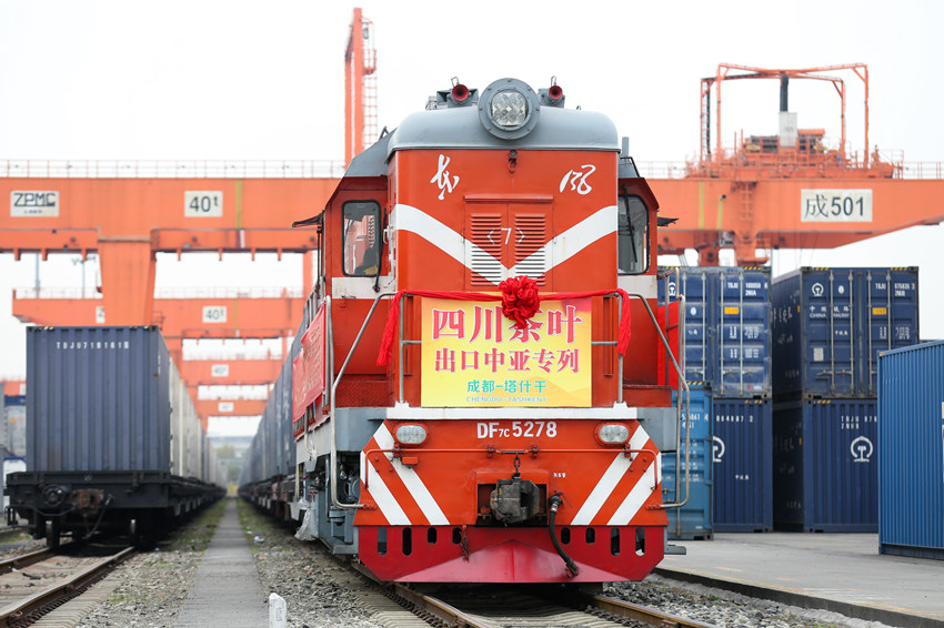 Freight train loaded with 1,300 tonnes of Sichuan tea leaves departs for Central Asia (2)