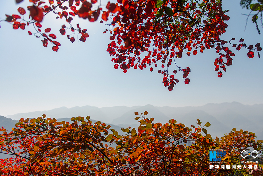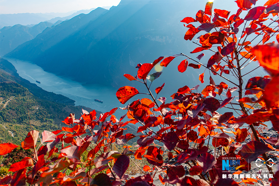 Aerial photo shows scenery of red leaves decorating the Three Gorges in early winter. (Photo by Wang Changzheng/Xinhuanet)