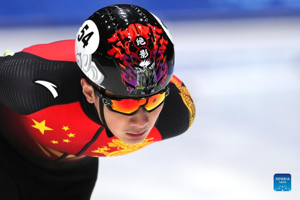 Ren Ziwei of China competes during the quarterfinal of men's 1500m race at the ISU World Cup Short Track Speed Skating series in Dordrecht, the Netherlands, Nov. 25, 2021. (Xinhua/Zheng Huansong)