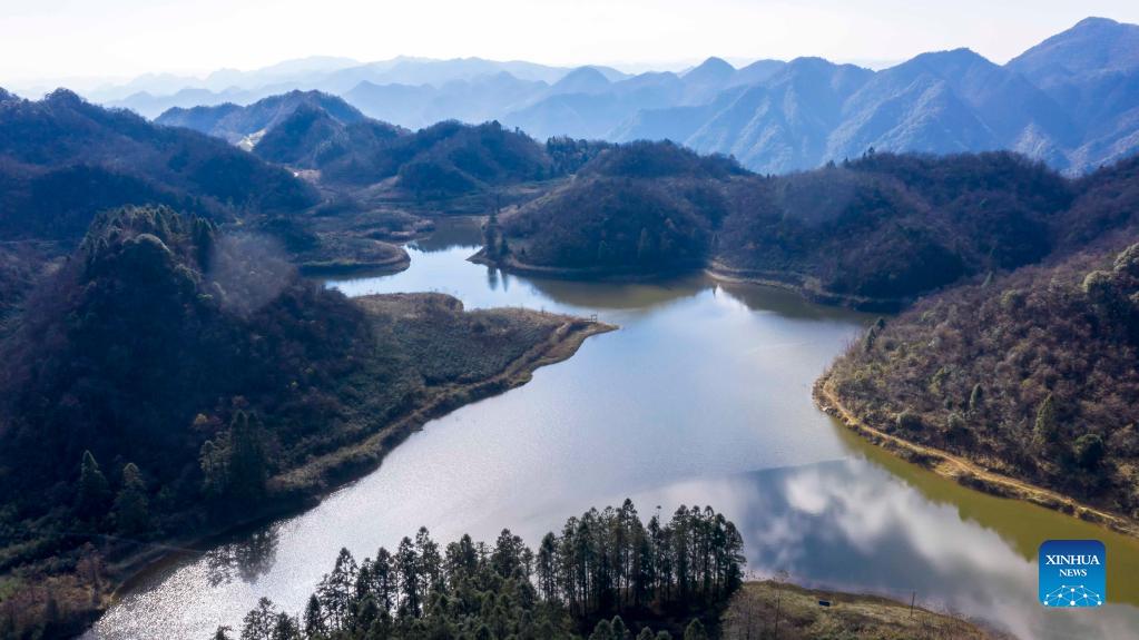 Aerial photo taken on Nov. 25, 2021 shows scenery of Kuankuoshui national nature reserve in Suiyang County, southwest China's Guizhou Province. (Xinhua/Yang Ying)