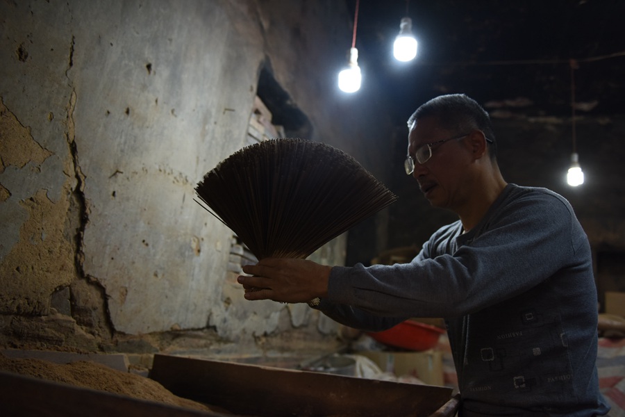 Inheritors pass down intangible cultural heritage of traditional incense craft in SE China’s Yongchun county