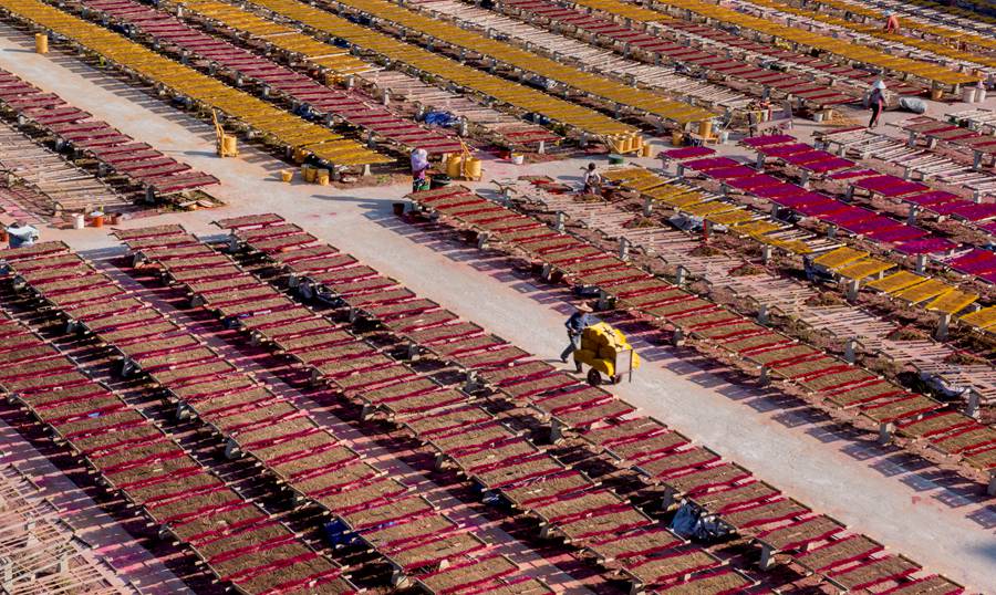 Workers dry incense sticks in Yongchun county, Quanzhou city of southeast China’s Fujian Province. (Photo/Zhang Wenqing)