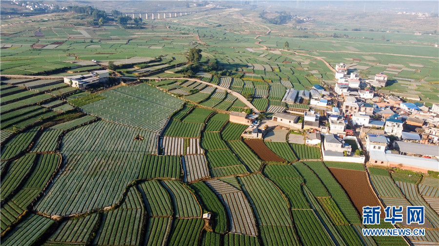 Aerial photo shows onion fields in Miandian Town of Jianshui County, Honghe Hani and Yi Autonomous Prefecture, southwest China's Yunnan Province. (Photo by Yang Junpeng/Xinhuanet)