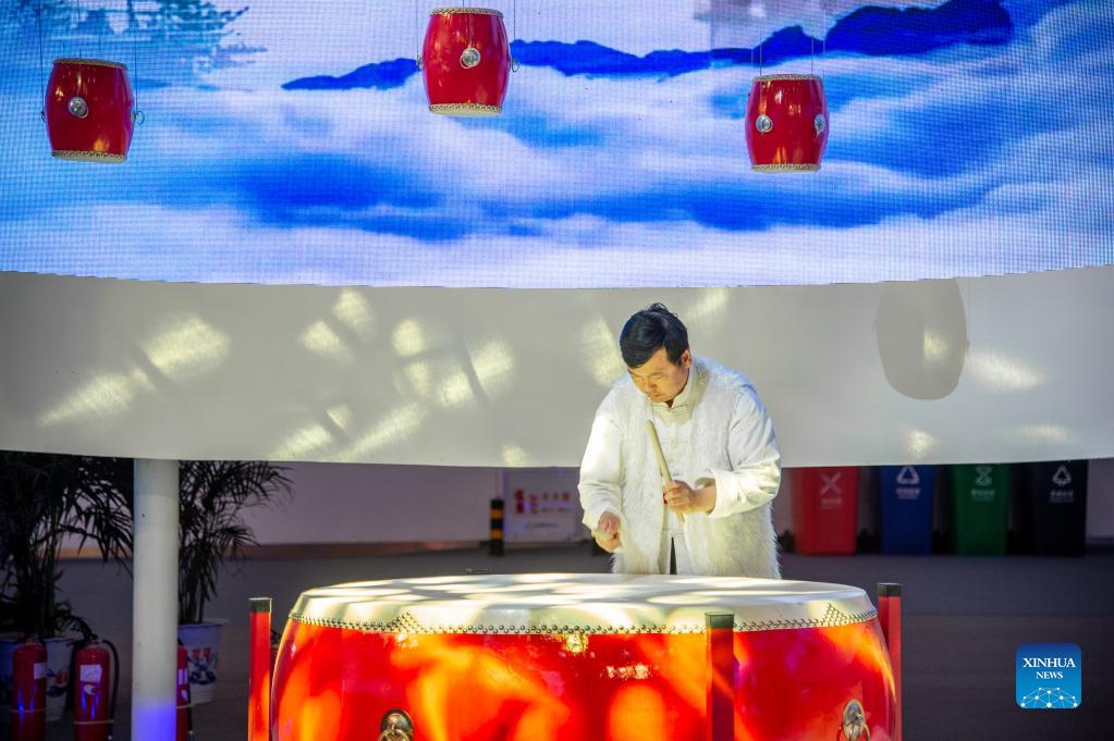 A drummer performs at the China (Wuhan) Culture and Tourism Expo in Wuhan, central China's Hubei Province, Nov. 26, 2021. The first China (Wuhan) Culture and Tourism Expo kicked off Friday in Wuhan, capital of central China's Hubei Province. Themed "Beautiful China, Happy Life," the three-day event has attracted industry and government representatives from 29 domestic provincial-level regions, 13 foreign countries and two international organizations, according to the organizers. (Xinhua/Wu Zhizun)