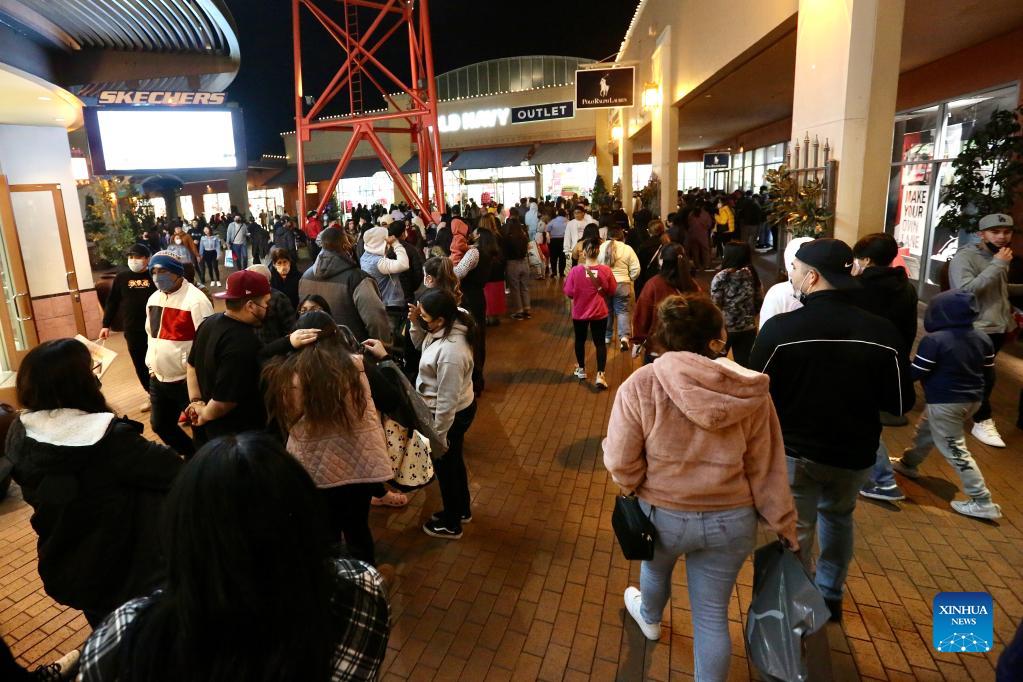 Black Friday shoppers wait to enter stores at the Citadel Outlets in Los Angeles, California, the United States, on the night of Nov. 25, 2021. (Xinhua)