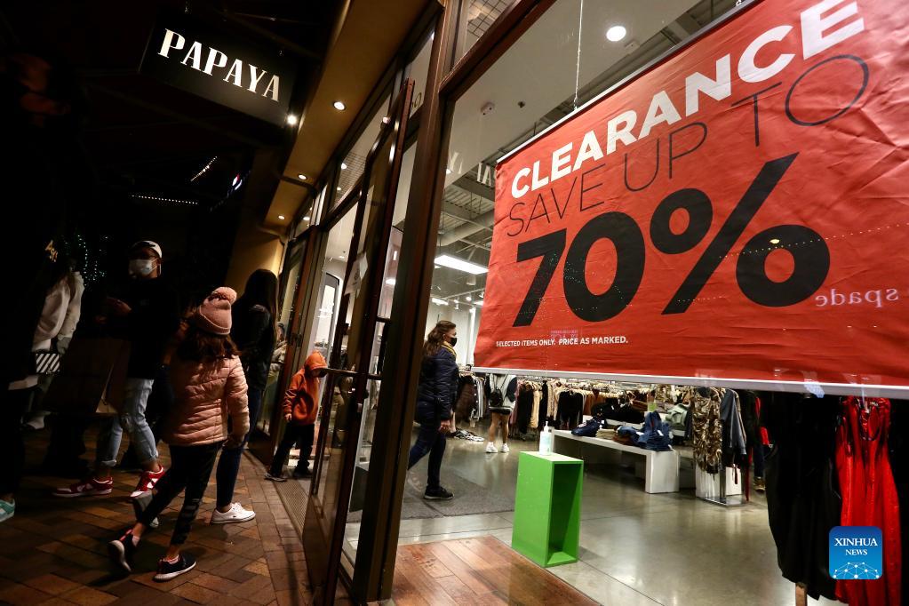 Black Friday shoppers enter a store at the Citadel Outlets in Los Angeles, California, the United States, on the night of Nov. 25, 2021. (Xinhua)