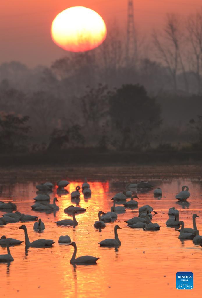 Swans seen at Donggu Lake wetland, Hunan (5)