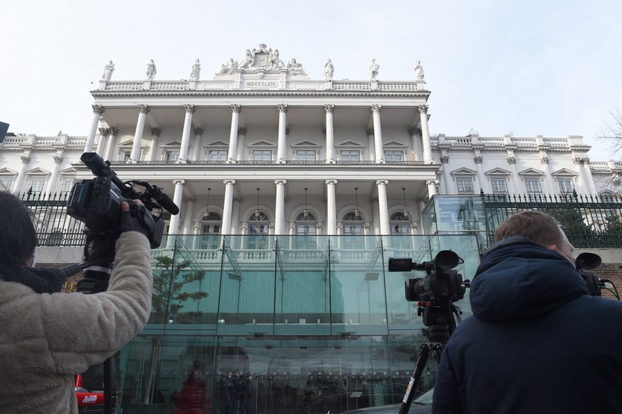 Members of the press wait outside the venue of the new round of Iranian nuclear deal talks in Vienna, Austria, Nov. 29, 2021.(Xinhua/Guo Chen)