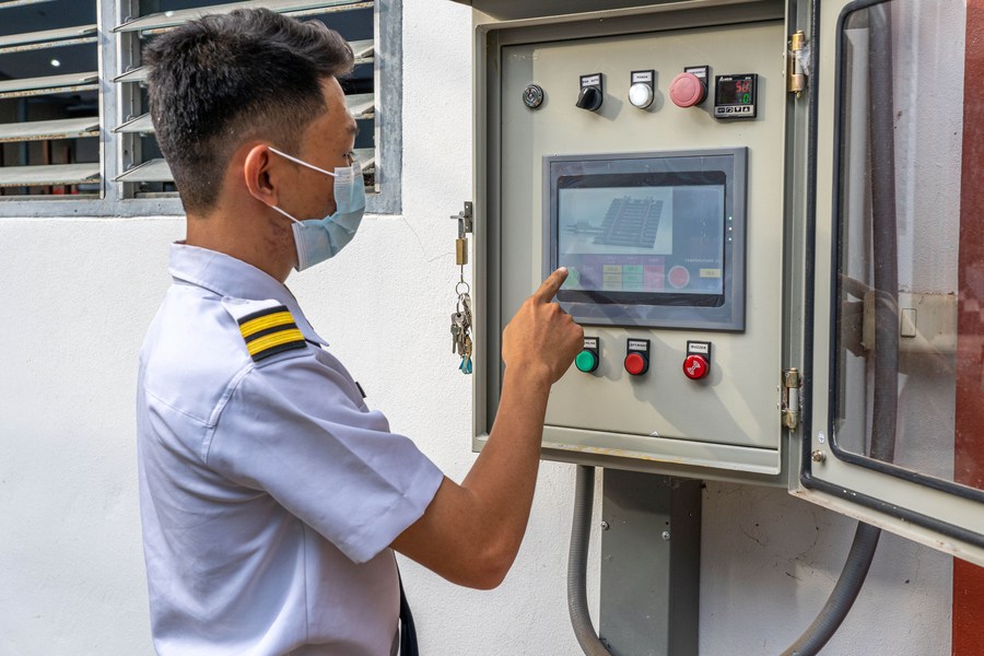 A student of the Banphai Industrial and Community Education College practices at a track switch in Khon Kaen province, Thailand, Nov. 17, 2021. (Xinhua/Lin Hao)