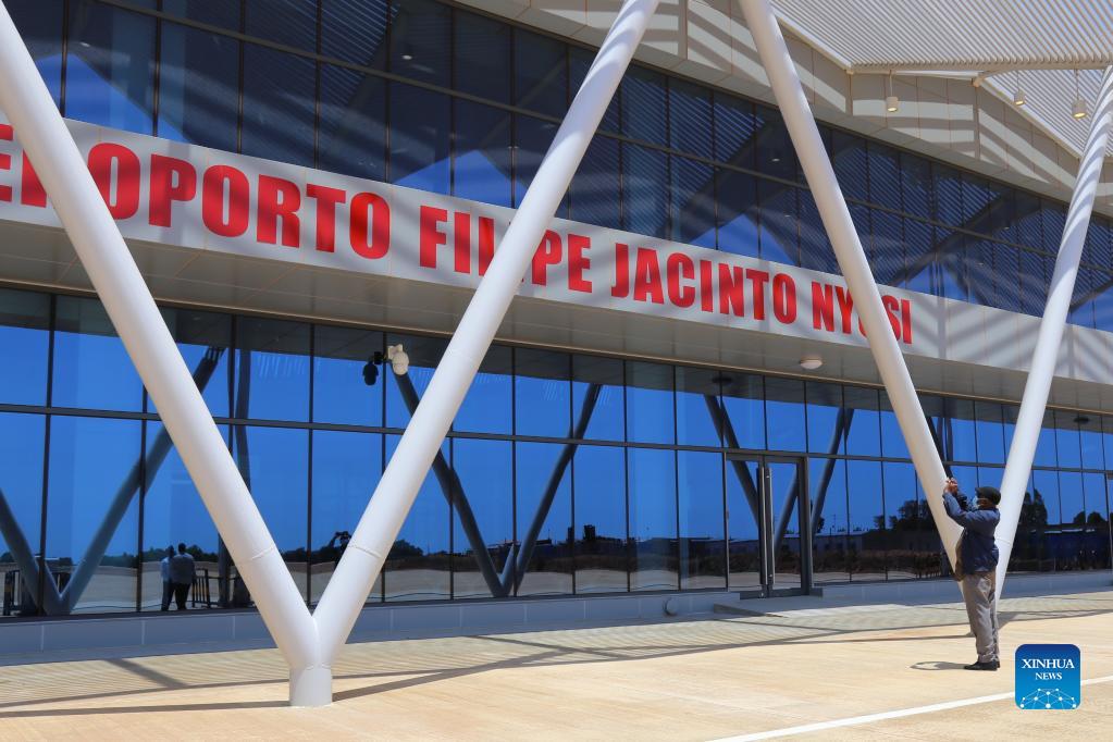 A visitor takes photos at a provincial airport financed by the Chinese government in Gaza province, Mozambiqu, Nov. 29, 2021. Mozambican President Filipe Nyusi on Monday inaugurated a provincial airport in the southern province of Gaza, which was financed by the Chinese government. (Xinhua/Nie Zuguo)