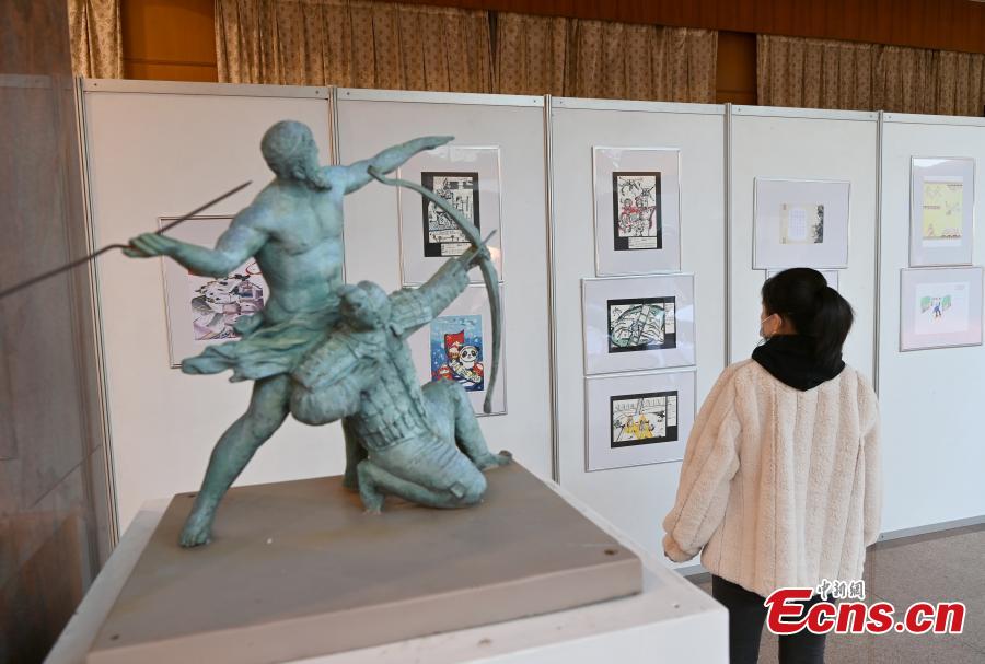 An exhibition, showcasing more than 100 artworks created by Chinese and Greek youth, is held at the Jintai Art Museum in Beijing, capital of China, Dec. 1, 2021. (Photo: China News Service/Hou Yu)