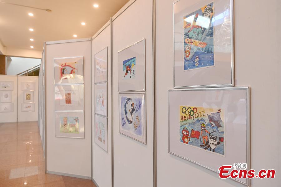 An exhibition, showcasing more than 100 artworks created by Chinese and Greek youth, is held at the Jintai Art Museum in Beijing, capital of China, Dec. 1, 2021. (Photo: China News Service/Hou Yu)