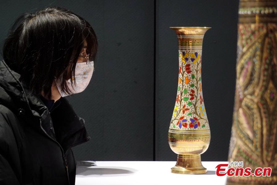 People view exhibits at the 7th Silk Road International Arts Festival, Xi'an, Shaanxi Province, Dec.1, 2021. (Photo: China News Service/Zhang Yuan)