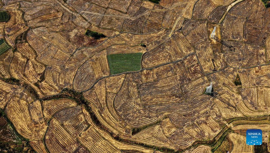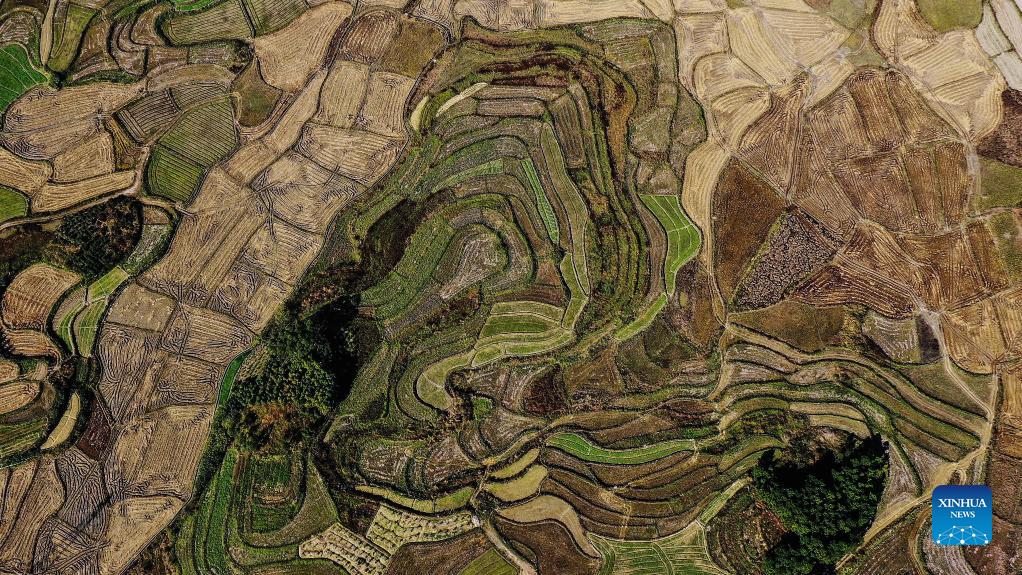 Aerial photo taken on Dec. 2, 2021 shows the scenery of Tantou Township, Rong'an County, south China's Guangxi Zhuang Autonomous Region. (Xinhua/Zhang Ailin)