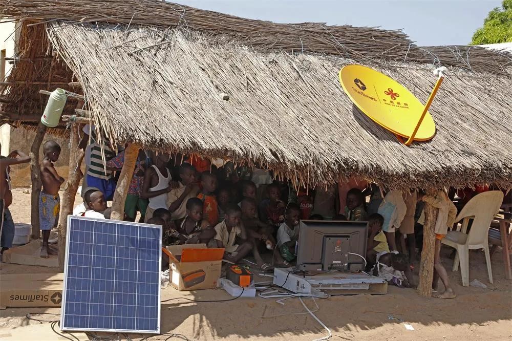Children in a village located in a suburb of Bouake city, Cote d’Ivoire, watch Chinese martial arts, or Kung Fu, movie on television. The village got access to digital satellite television signal thanks to a project named “Access to Satellite TV for 10,000 African Villages (or “Wan Cun Tong” in Chinese)”, which was funded by Chinese government and undertaken by Chinese companies. (Photo/Courtesy of StarTimes)