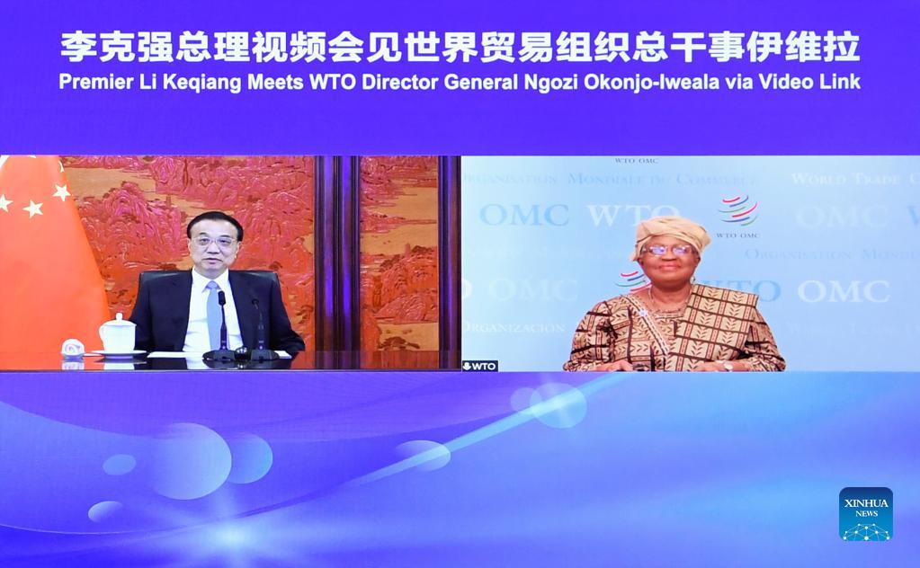 Chinese Premier meets with WTO director-general via video link