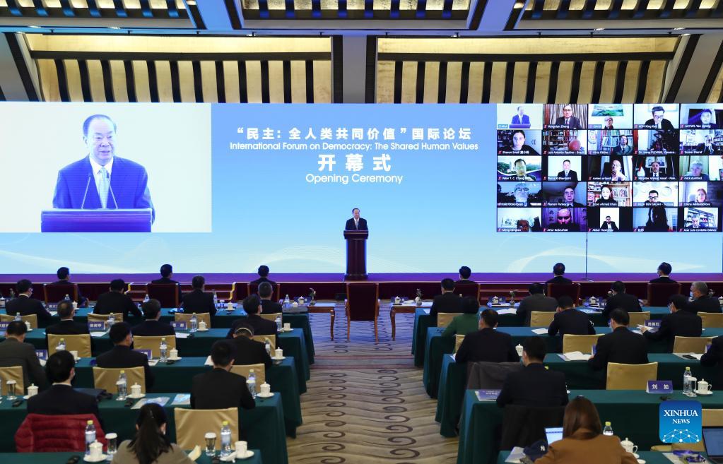 Photo taken on Dec. 4, 2021 shows the opening ceremony of the International Forum on Democracy: the Shared Human Value, in Beijing, capital of China. (Xinhua/Chen Yehua)
