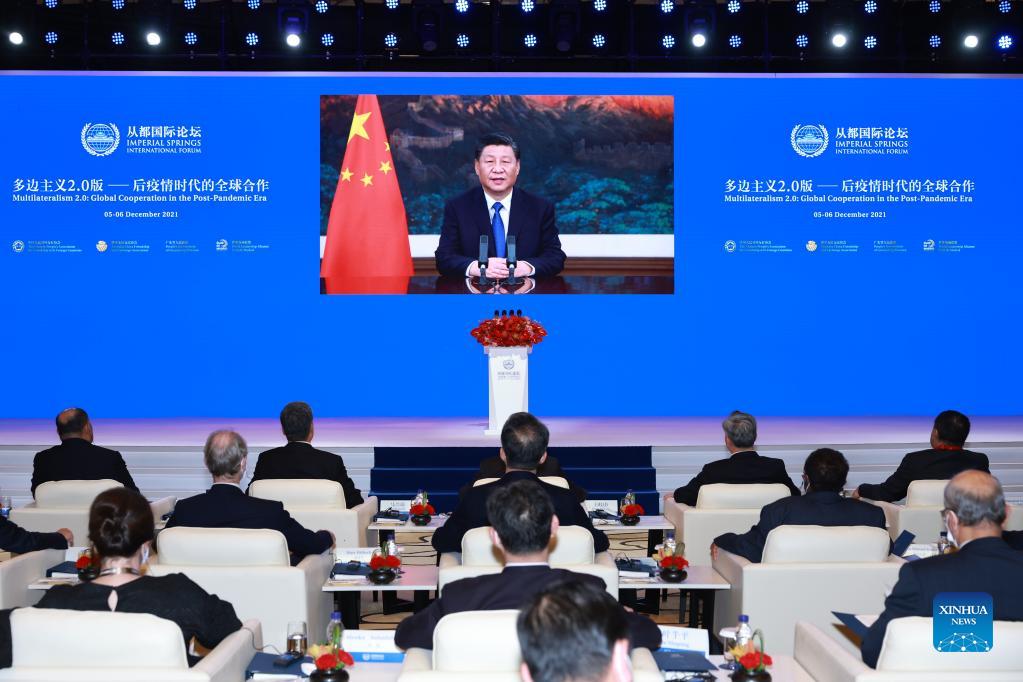 BEIJING, Dec. 5 (Xinhua) -- China's determination to support multilateralism will not change, Chinese President Xi Jinping said on Sunday while delivering a speech via video at the opening ceremony of the 2021 Imperial Springs International Forum.