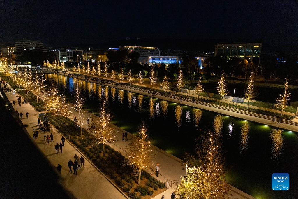 Photo taken on Dec. 5, 2021 shows festive lights in Athens, Greece. (Xinhua/Marios Lolos)