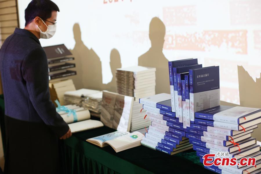 More than ten publications are on display at the Memorial Hall of the Victims in Nanjing Massacre by Japanese Invaders in Nanjing, East China's Jiangsu Province, Dec. 7, 2021. (Photo: China News Service/Yang Bo)