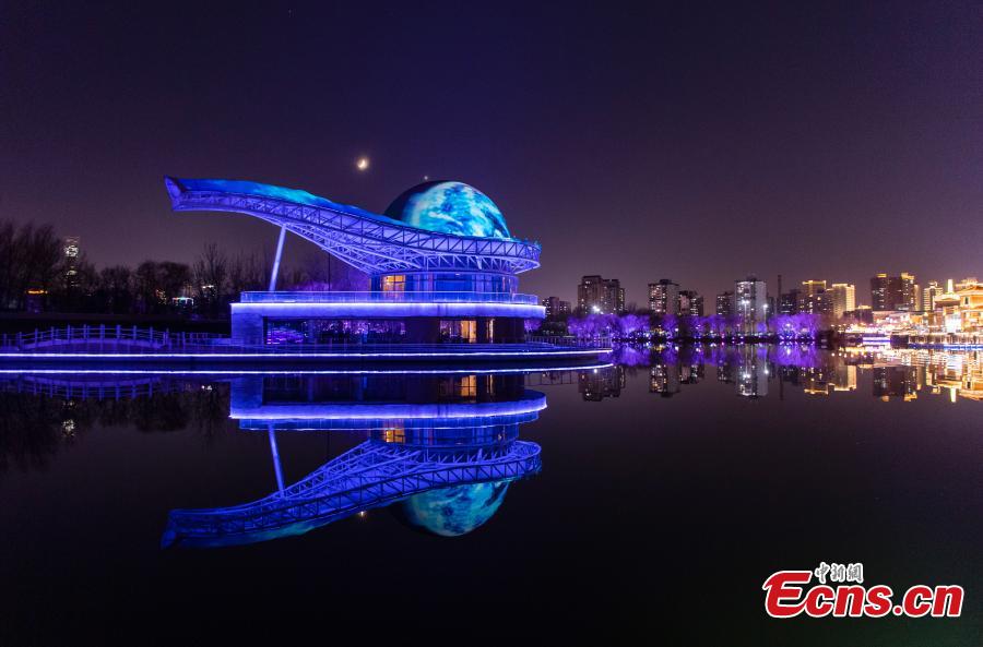 Colorful lights brighten up the Liangma River International Style Waterfront in Chaoyang District, Beijing, capital of China, Dec.7, 2021. (Photo: China News Service/Hou Yu)