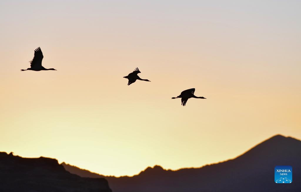 About 1,500 black-necked cranes fly to Lhunzhub County of China's Tibet (2)